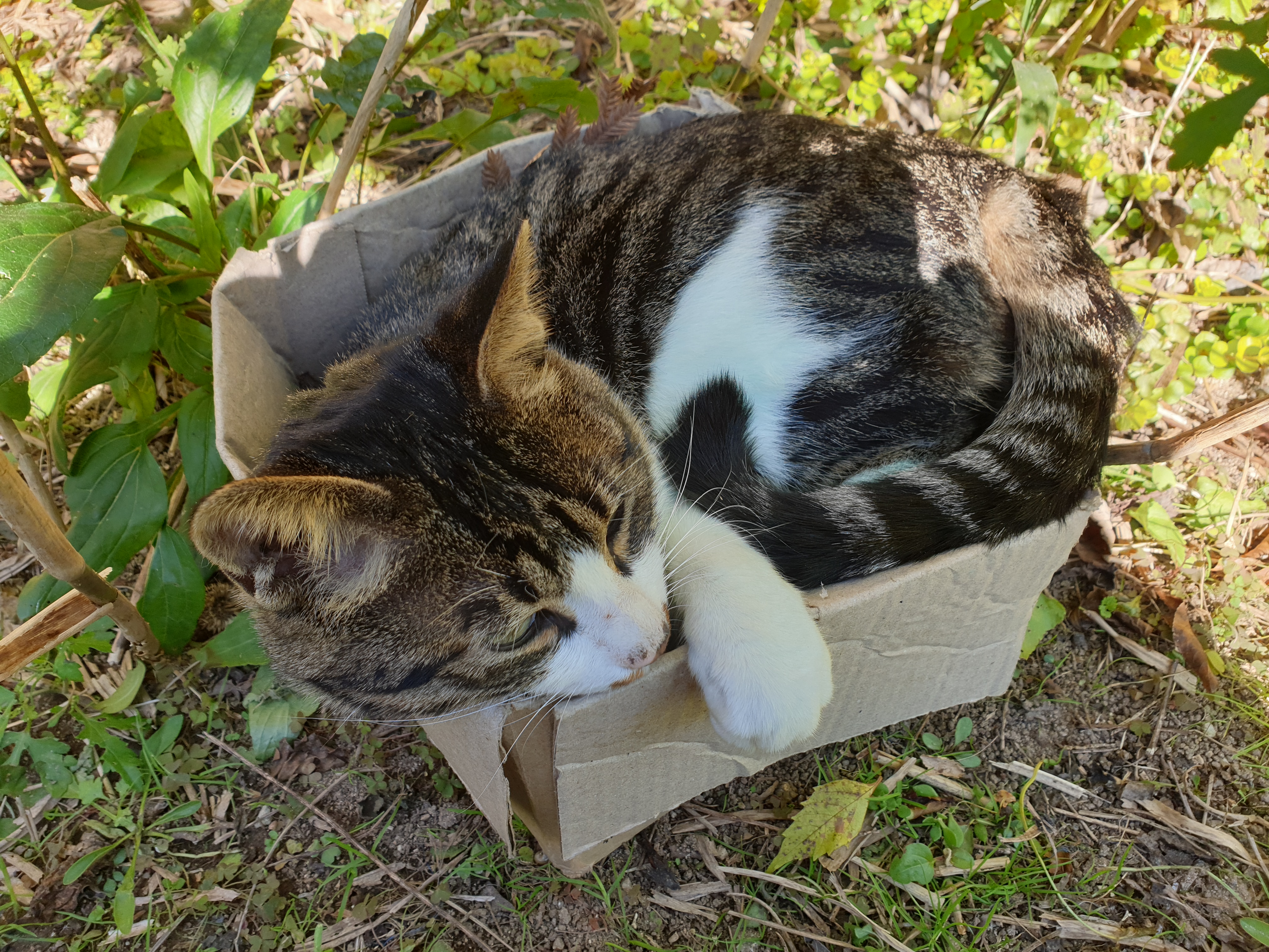 요즘 계속 해가 나서 미뤘던 빨래 해 널고 언잎 떨어진 잎들 정리해 저 박스에 넣고 태우는 중인데 지 안 만줘준다고 일도 못하게 박스 안으로 들어가 버린 놈